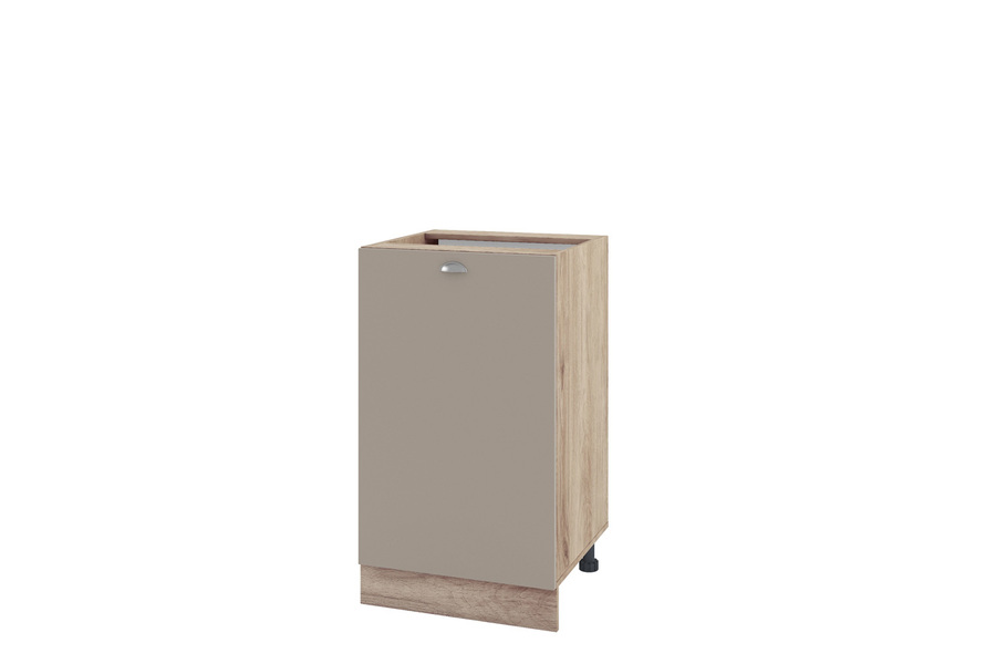 Долен шкаф с вратичка с плавно затваряне и рафт. Посоката на отваряне се определя при монтажа ѝ.