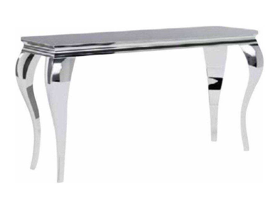 Конзолна маса ПРИНС С е перфектно решение за бляскава всекидневна, като същевременно запазва класически елементи. Дизайнът деликатно препраща към популярния викториански стил. Гланцираният черен стъклен плот изглежда перфектно в сребриста рамка. Изисканата форма на краката от хромиран метал изглежда изключително ефектно и осигурява стабилност. Тази авангардна конзола ще придаде блясък и характер на интериора.