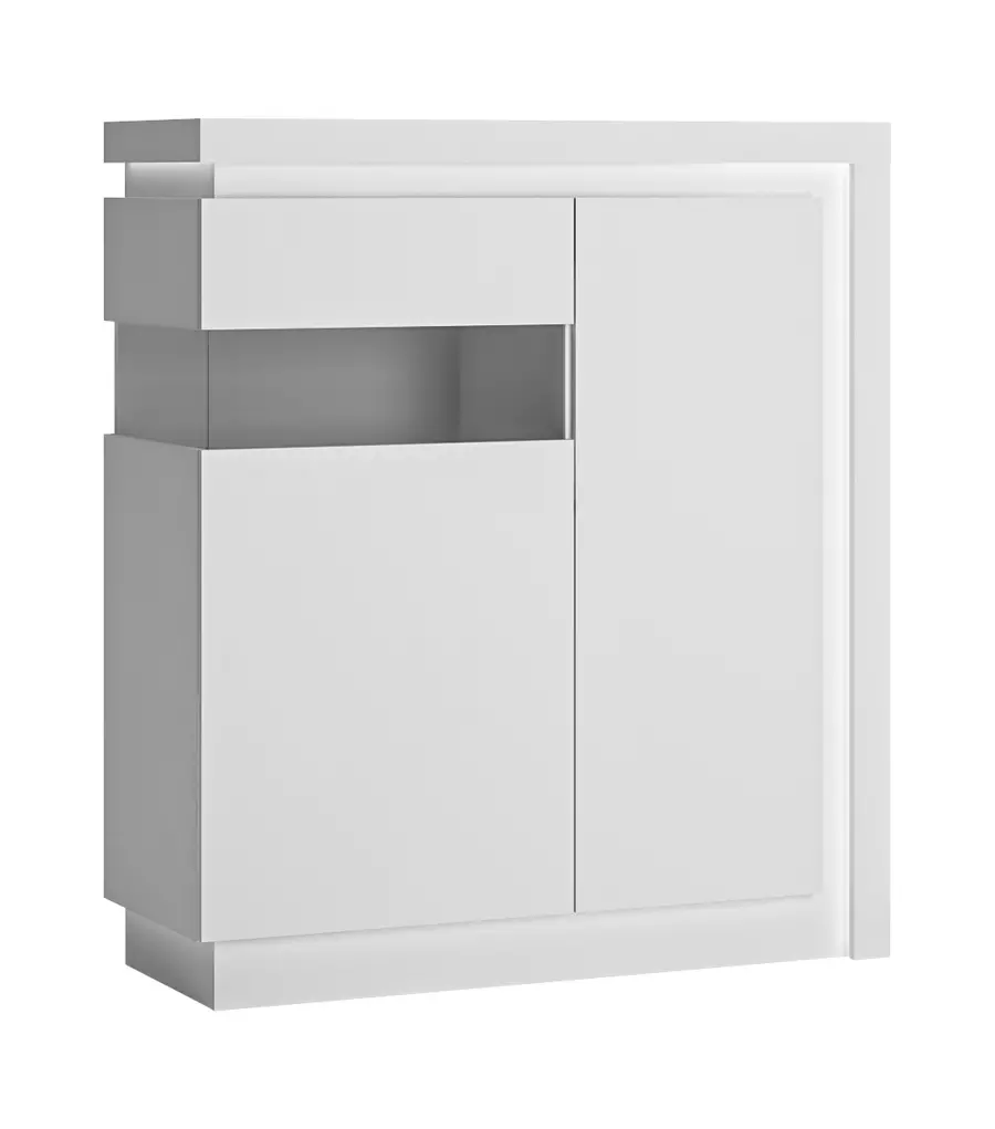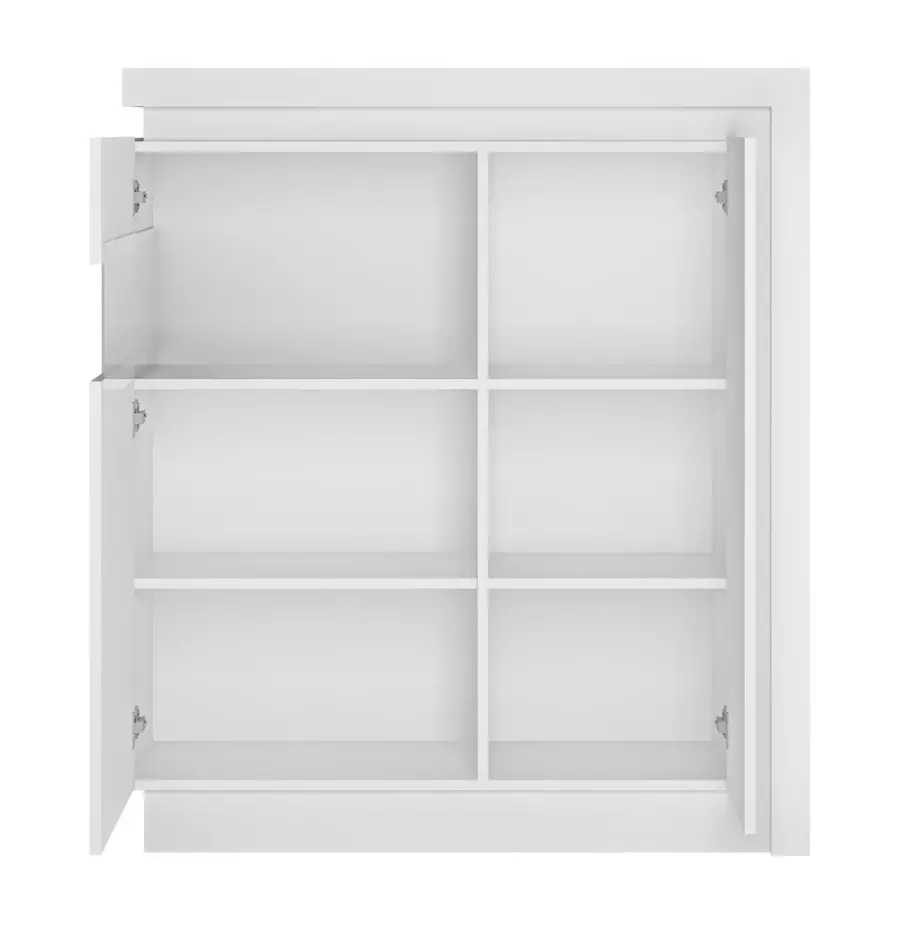 Витрина Лион разполага и с панти с механизъм за плавно затваряне. Закалено стъкло 4 мм. LED осветлението е включено в цената.