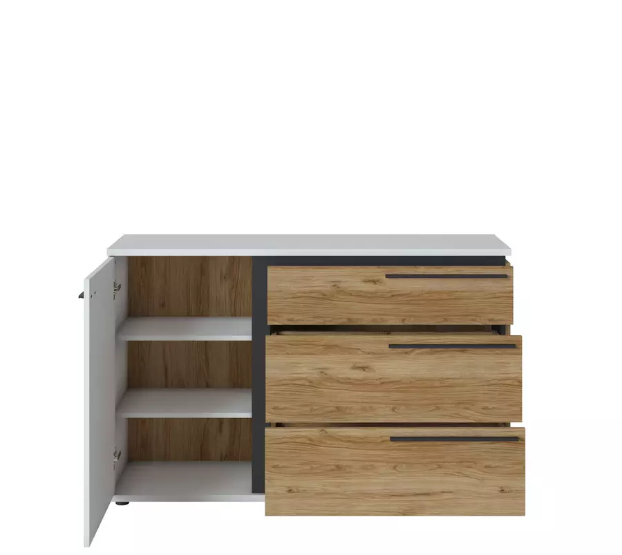 Бюфет Салинас разполага и с панти с механизъм за плавно затваряне. Практично разположение.