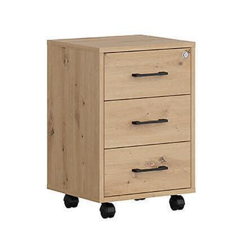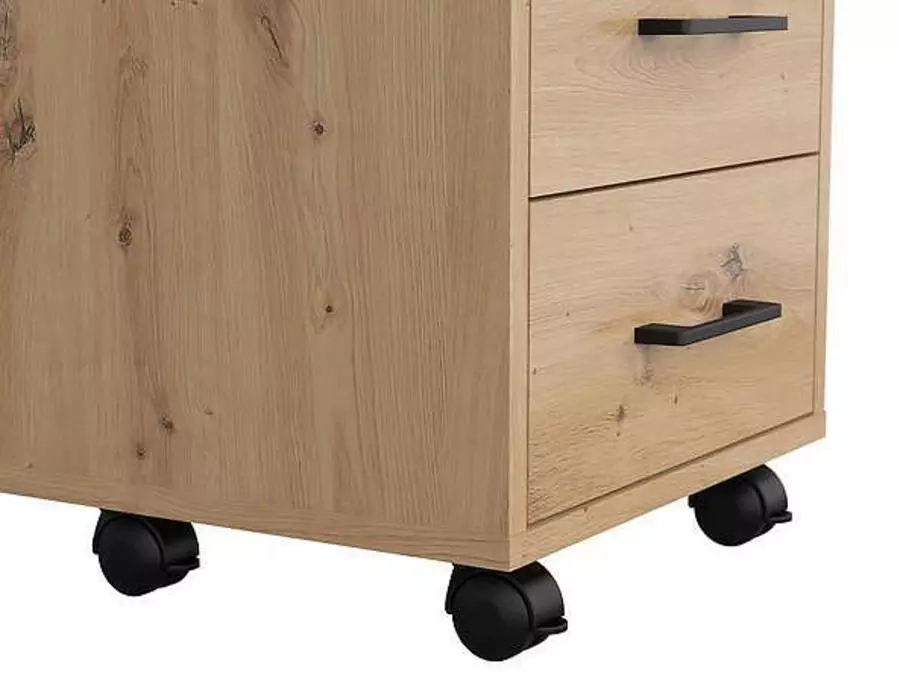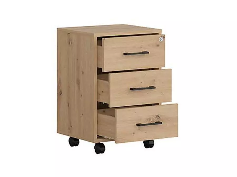 Контейнер Спейс офис е идеалното решение за организацията на пространството. С модерен дизайн и внимателно подбрани материали, този шкаф предоставя многофункционално пространство за съхранение. Трите чекмеджета предлагат удобство за съхранение на различни предмети, като същевременно подчертава съвременния интериор. Неговата универсалност го прави подходящ за всяко помещение - от хола и спалнята до работното ти място в офиса.