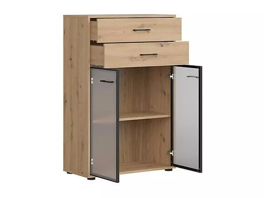 Витрина Спейс офис е елегантно и функционално решение за организацията в твоя дом и офис. С тънък и изискан дизайн, тя предоставя чудесен начин за изложба на твоите любими предмети или декоративни елементи. Съчетавайки стъкло и дърво, витрината добавя изтънченост във всяко пространство. С чекмеджета и рафтовете ти предоставя удобно пространство за съхранение и едновременно подчертава красотата на предметите вътре.