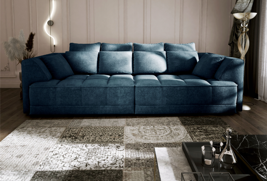 Диванът разполага с множество декоративни възглавници,които са със сваляеми калъфки с цип.