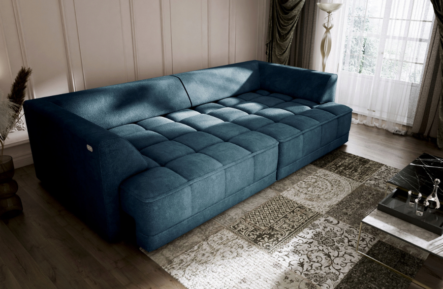 Диван ТИГА разполага с електрически разгъващи се седалки, като дълбочината се регулира според вашите нужди само с натискането на един бутон. Двете седалки се разтягат независимо една от друга до 27 см.