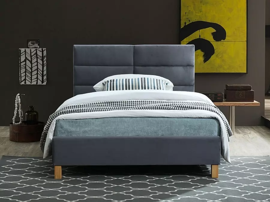 Легло СИЕРРА в сиво ще превърне всяка стая в място за дългоочаквана почивка и релакс. Изработено е от здрава МДФ плоскост и дървени елементи. Цялото е тапицирана с кадифен текстил;. Мека облегалка за глава с декоративни шевове ще осигури удобна опора, докато четете книга или пиете сутрешно кафе. Конструкцията е покрита с дървени крака с подложки, предпазващи пода.