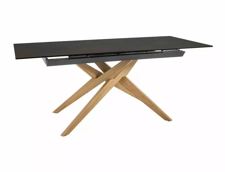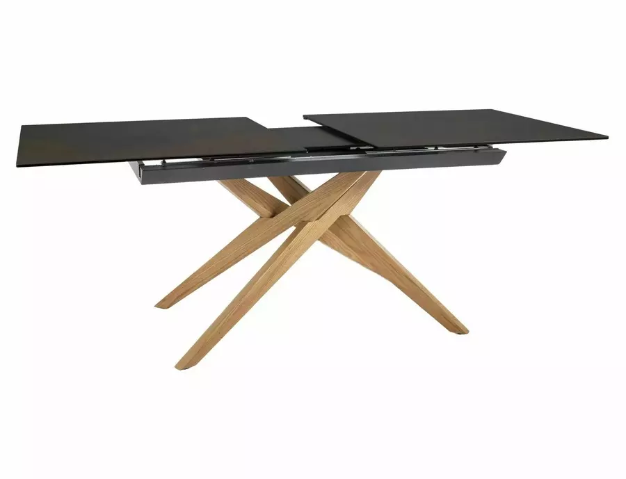 Масата разполага с разтегателен механизъм с централен отвор, който позволява лесно увеличаване на размера на плота. В събрано състояние масата е с дължина 180 см, а в разтегнато състояние достига до 230 см, осигурявайки повече пространство за вашите гости. Тази маса е перфектен избор за обедни зали, всекидневни и големи кухни, като предлага не само стил, но и функционалност.