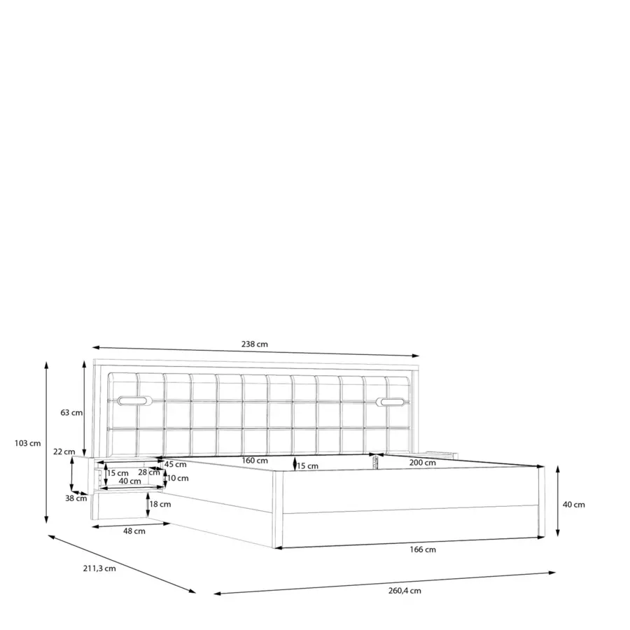 • Размери на леглото: Проектирано за стандартен двулицев матрак с размер 160х200 см .