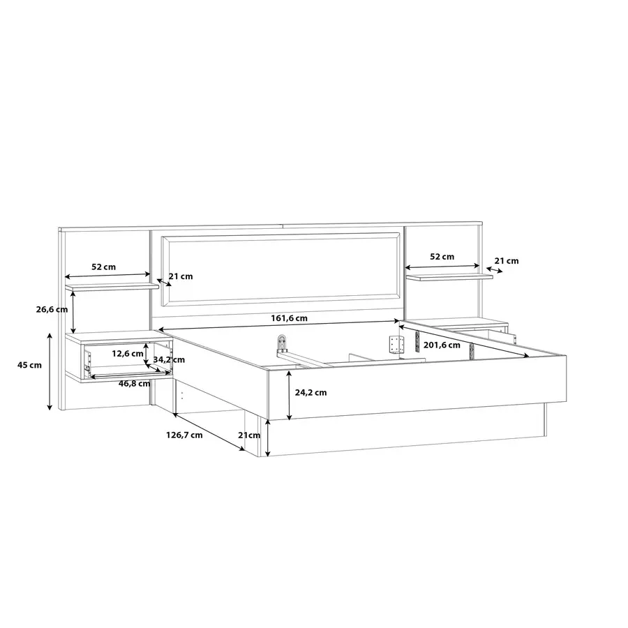 Размери на леглото: Конструирано за матрак с размер 160х200 см.