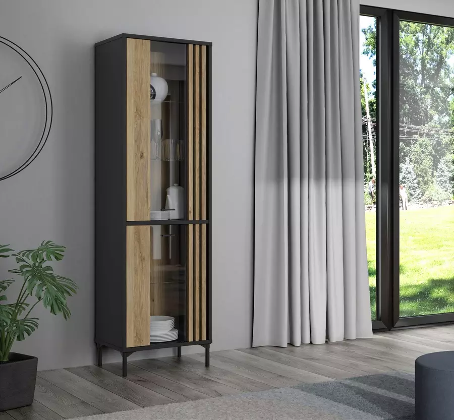 Витрина ЙОАКИМИС JMXV721 представлява съвременно решение за вашия дом, съчетаваща елегантност и практичност. Със своите две стъклени врати, тази витрина е идеална за излагане на декоративни предмети, колекции, книги или специални аксесоари, предоставяйки както естетика, така и защита от прах и замърсявания.