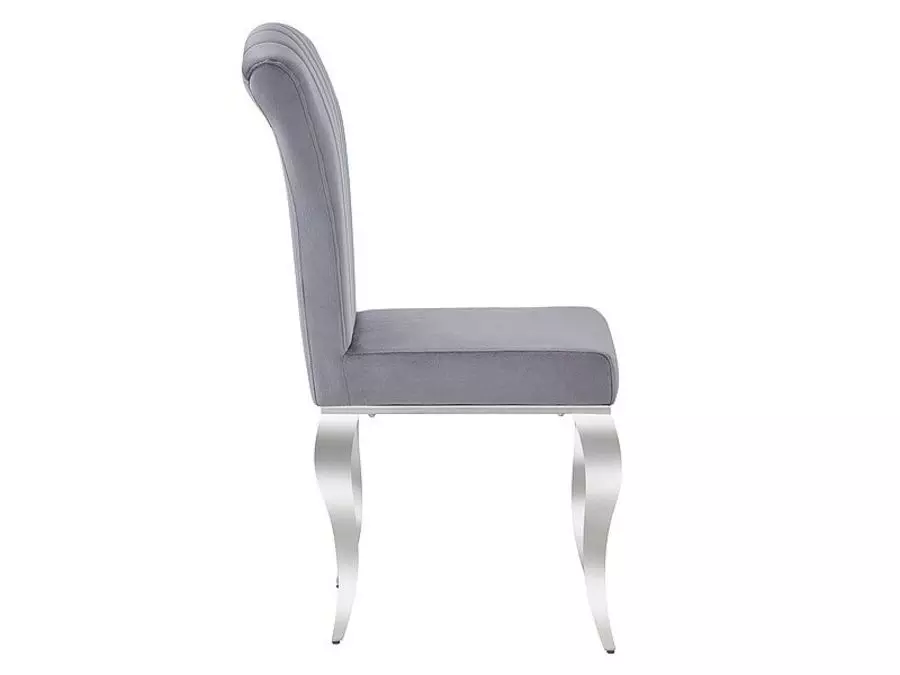 Трапезен стол ПРИНС съчетава класически дизайн с модерни елементи, изработен от плътна пяна и висококачествена кадифена материя, устойчива на износване. С максимално натоварване до 120 кг и хромирани метални крака, той осигурява стабилност и издръжливост. Столът предлага комфорт и стил, като се съчетава перфектно с маса от същата колекция, създавайки хармоничен интериор. Идеален за дома, кафенета и ресторанти, той съчетава елегантност и практичност.