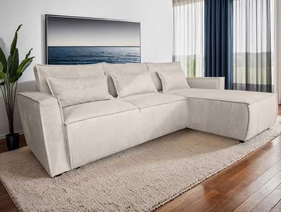 Ъглов диван МЕЛАНИЯ с ракла и функция сън.