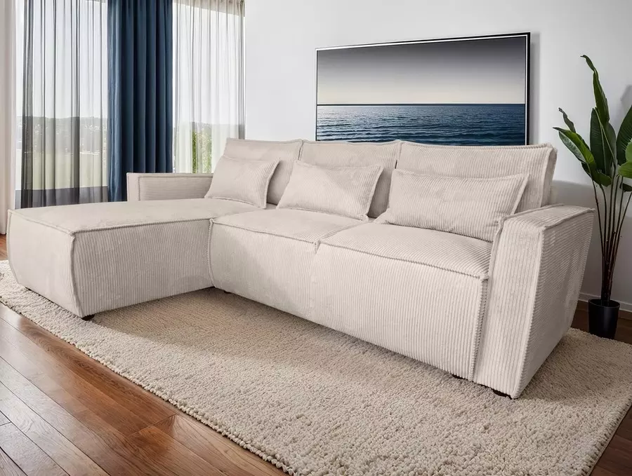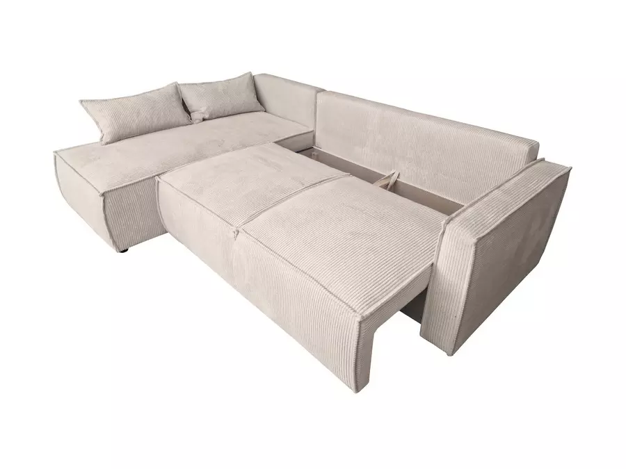 Ъглов диван МЕЛАНИЯ с ракла и функция сън. Размер на площта за спане:140x204 cм. Височина на седалищната част:44 см. Дълбочина на подлакътника:102 см.