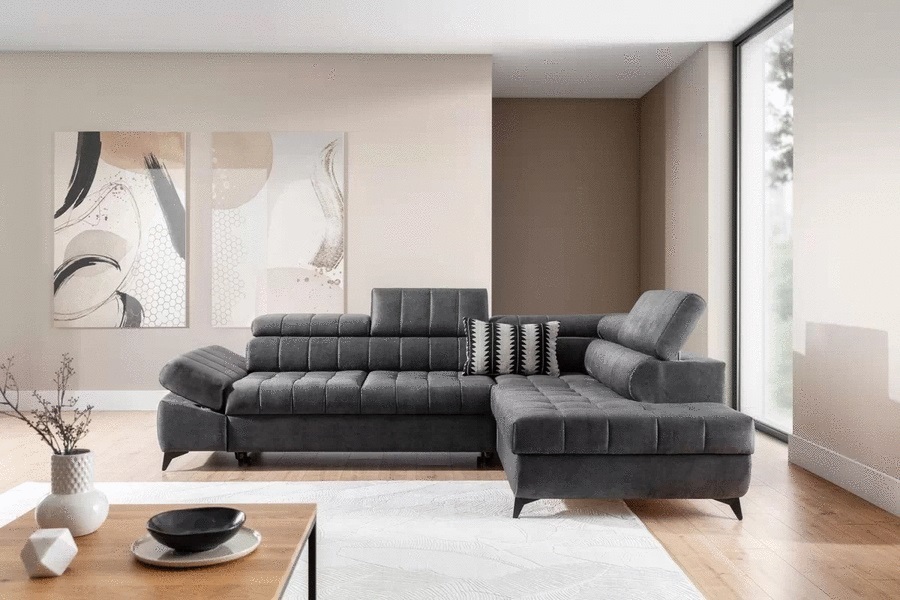 Ъгловият диван ВАЛОРИС L е създаден с мисъл за стил, комфорт и практичност, като ви предлага не само място за почивка и релакс, но и функционални решения за всекидневния живот.