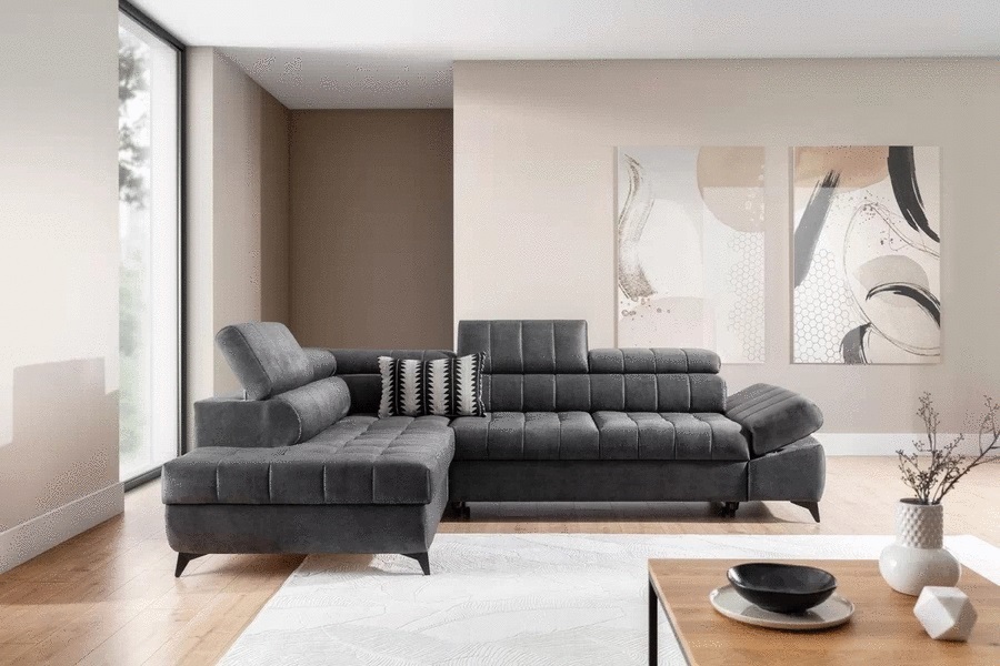 Ъгловият диван ВАЛОРИС L е създаден с мисъл за стил, комфорт и практичност, като ви предлага не само място за почивка и релакс, но и функционални решения за всекидневния живот.