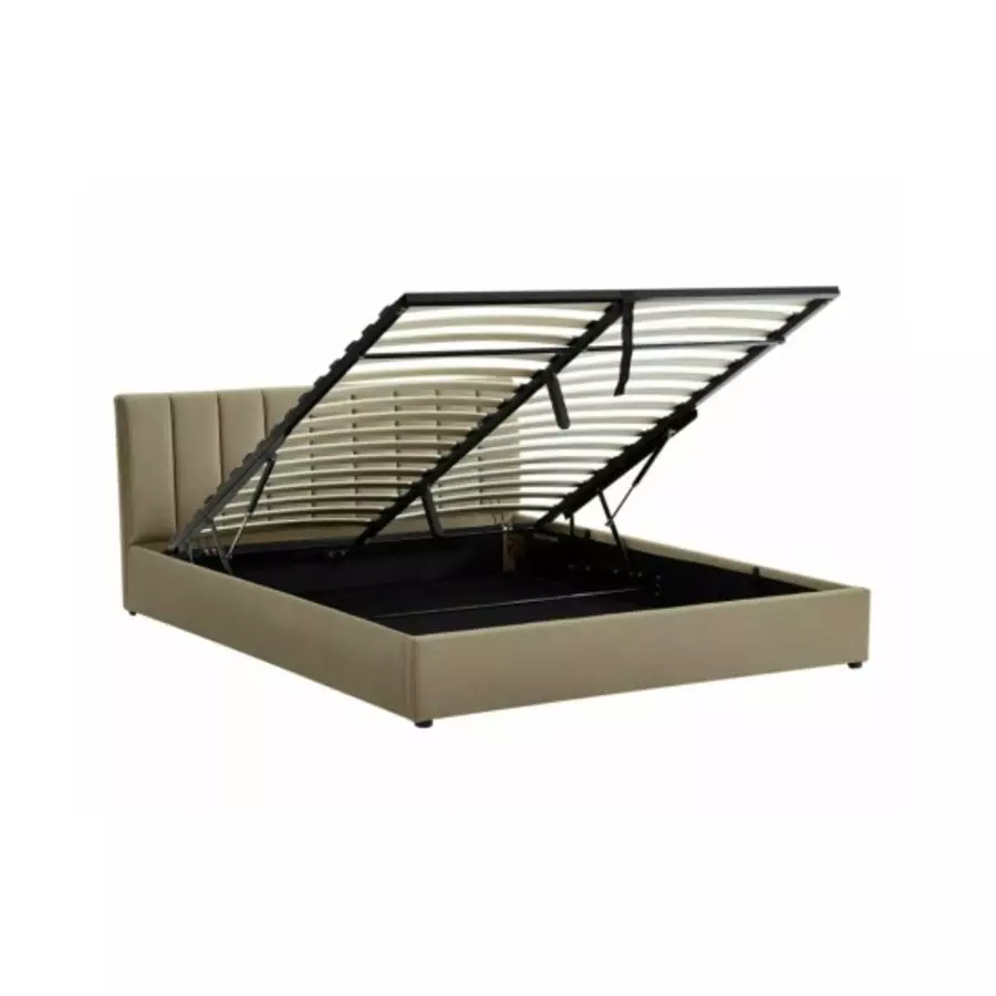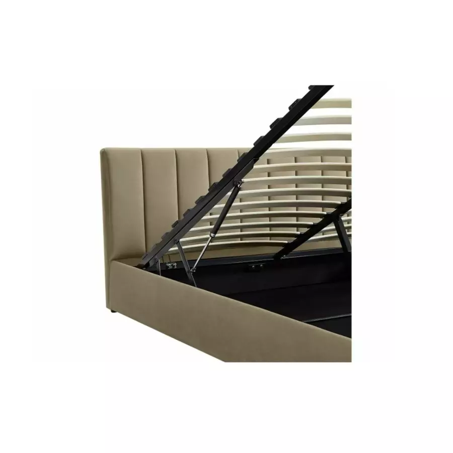 Тапицирано легло МОНТРЕАЛ подходящо за всеки интериор е изработено от кадифен текстил в бежов цвят. В цената е включена подматрачна рамка с газови амортисьори и ракла за съхранение .