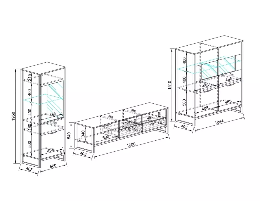 Разбира се веднага прави впечатление различният елемент на тази серия спрямо всички останали, а именно металните рамки, които служат за крака, но и за уникално допълнение към интериора. Стилът е много различен и интересен. Изделия с метали стават все по-популярни в Европа заради чувството на височина и пространство, което създават. Използваните декори са от най-популярните, а именно сонома арвен и графит. За по-изчистена визия не са използвани дръжки, а зарязвания на вратите и челата. Даваме възможност към секцията да се добави ЛЕД осветление за стъклените рафтове, което придава допълнителен стилен туш. В масата сме внедрили 2 чекмеджета за ежедневно удобство.