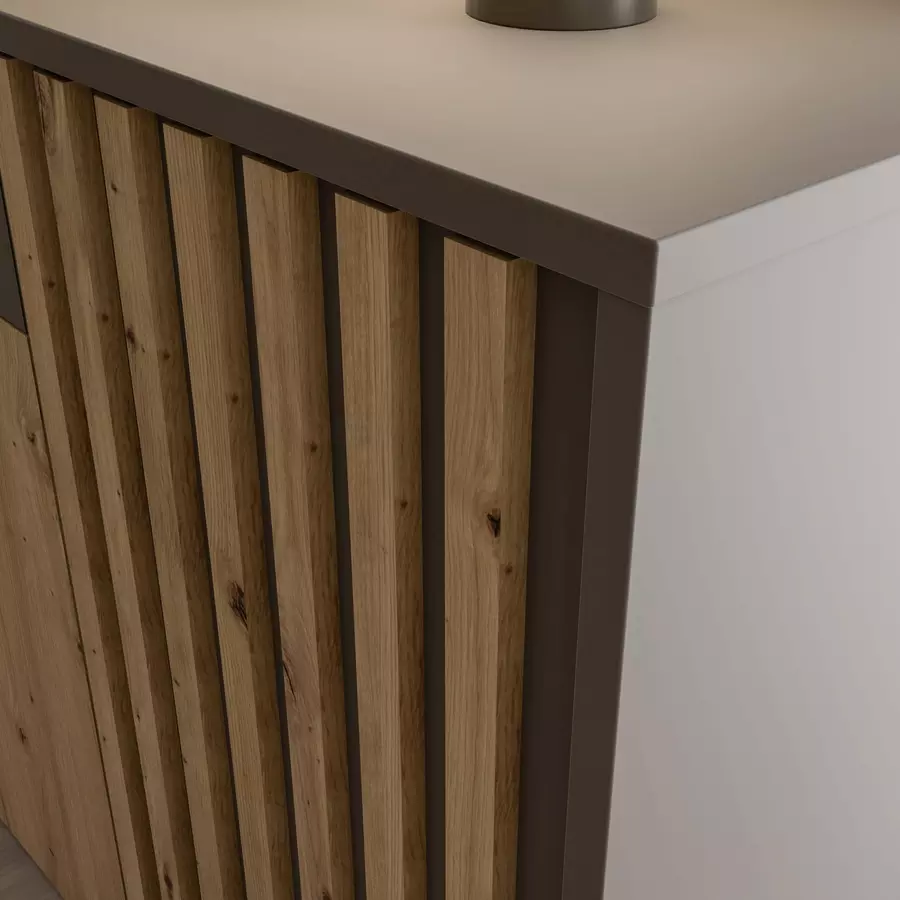 Бюфетът ГАБАРИАН GBNK232R-M855 е перфектен избор за трапезарията, хола или коридора. Благодарение на своето компактно, но практично оформление, той осигурява достатъчно място за съхранение, без да заема прекалено много пространство.