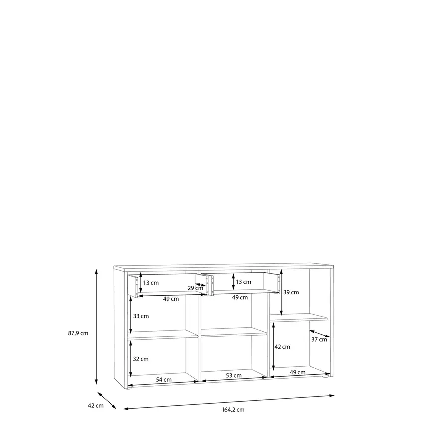 Изработен от висококачествено ПДЧ, бюфетът гарантира здравина и устойчивост на ежедневно износване. Материалът е известен със своята дълготрайност и лесна поддръжка, което прави бюфета подходящ за интензивна употреба в дома.