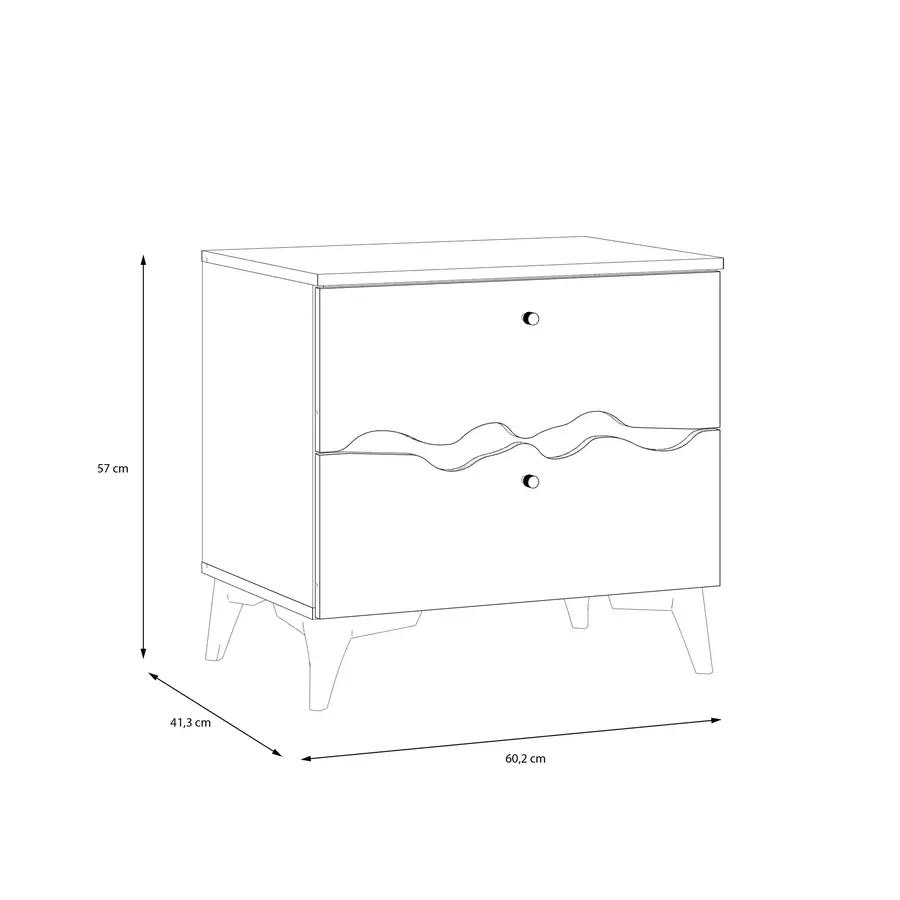 Шкафчето впечатлява с изчистените си линии и съвременен вид, което го прави идеален за минималистични или модерни интериорни стилове. То е компактен, но функционален елемент, който добавя характер и стил на всяко помещение.