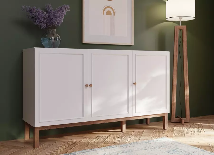 Бюфетът ПЕНКРИДЖ PKDK231-M848 разполага с три плътни врати, които предлагат различни зони за съхранение. Всяка врата прикрива удобно пространство за складиране на различни предмети, като посуда, текстил или документи, които не е необходимо да бъдат на показ.