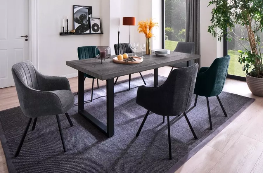 Тапицерията на седалката е изработена от мек, структуриран текстил, който добавя елегантен и съвременен вид на стола, като същевременно е издръжлив и лесен за поддръжка.