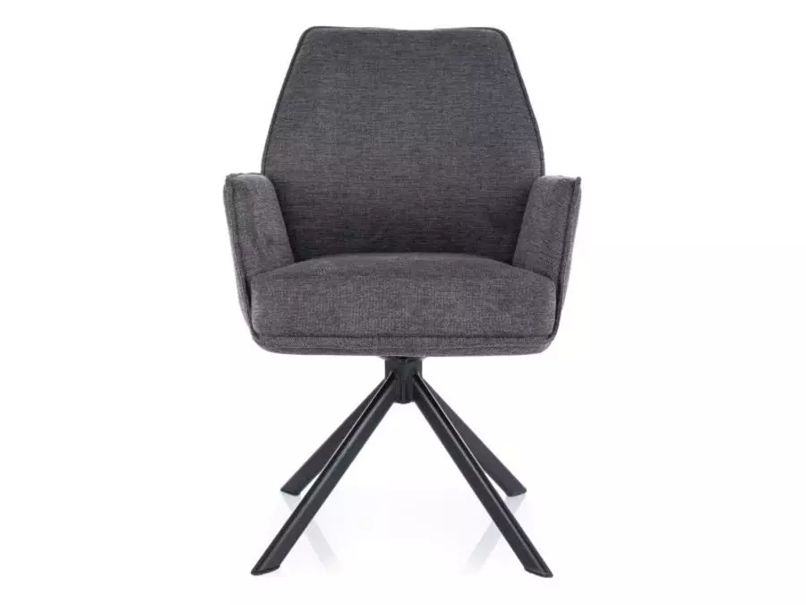 Кресло ХЮГО е перфектен избор за всеки модерен интериор. Изработено от плътна пяна и устойчива на износване висококачествена материя, креслото осигурява дълготраен комфорт. Металните крака с матово покритие добавят стабилност и стил. Със седалка, която се завърта на 180 градуса, и максимално натоварване до 120 кг, креслото съчетава удобство и практичност. Подходящо за трапезарии, дневни, офиси и съвременни пространства, то комбинира елегантен дизайн с висока функционалност.