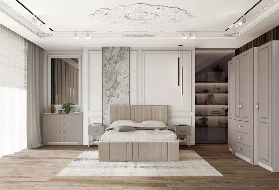 Луксозна спалня "Boutique 1", който Ви предоставя всичко необходимо за обзавеждането на Вашата спалня. Разполага с две тапицирани табли и повдигащи амортисьори, които осигуряват достъп до подматрачно пространство.