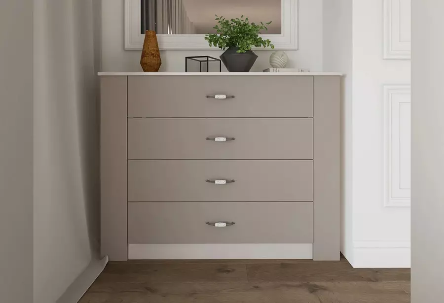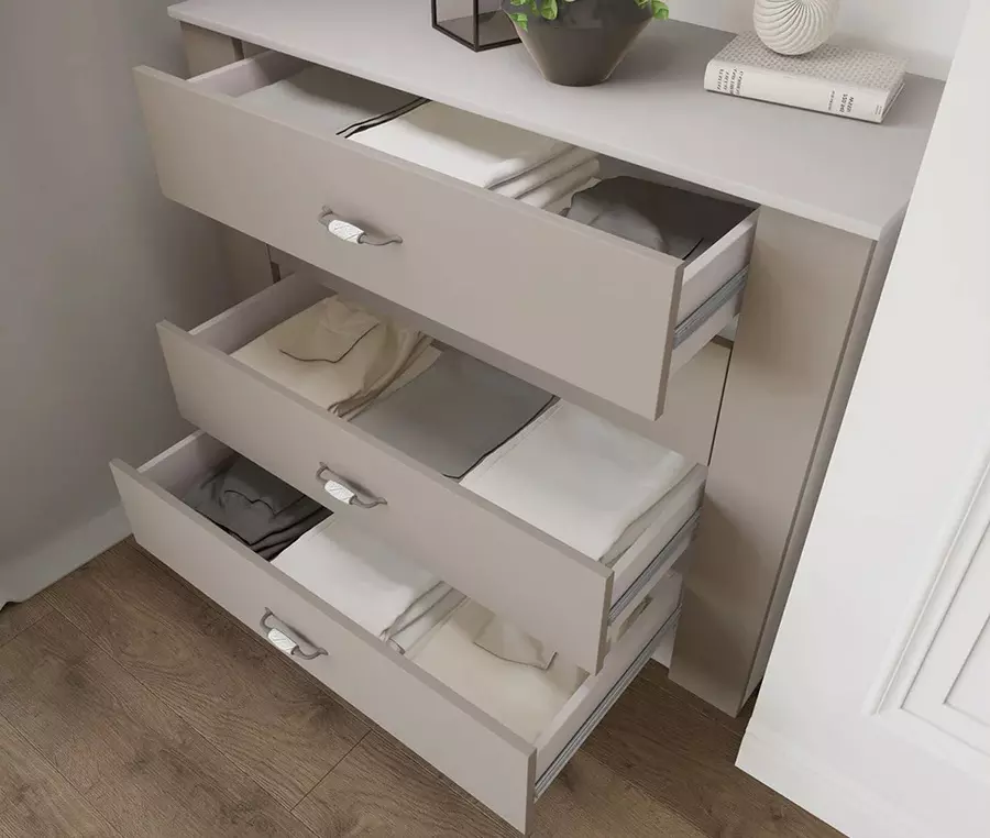 Скрин БУТИК, който Ви предоставя всичко необходимо за обзавеждането на Вашата спалня. Чекмеджетата са със съчмени водачи - пълно изтегляне и плавно затваряне.