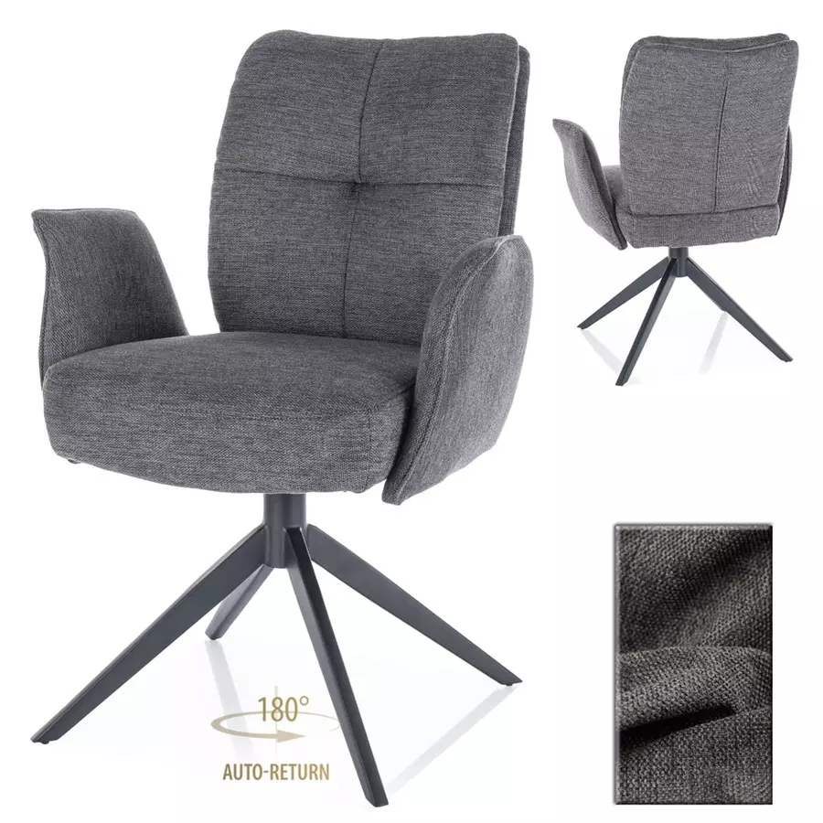 Кресло Линк е идеално допълнение към всяко съвременно пространство. Тапицирано с висококачествена текстилна материя, то предлага изключителен комфорт и стил. Ергономичната седалка и подлакътници осигуряват удобство при дълготрайно седене. Металната основа в черно матово покритие е стабилна и здрава, като разполага с 180-градусов въртящ се механизъм с функция за автоматично връщане. Тази характеристика прави креслото подходящо както за трапезарии и дневни, така и за офиси.