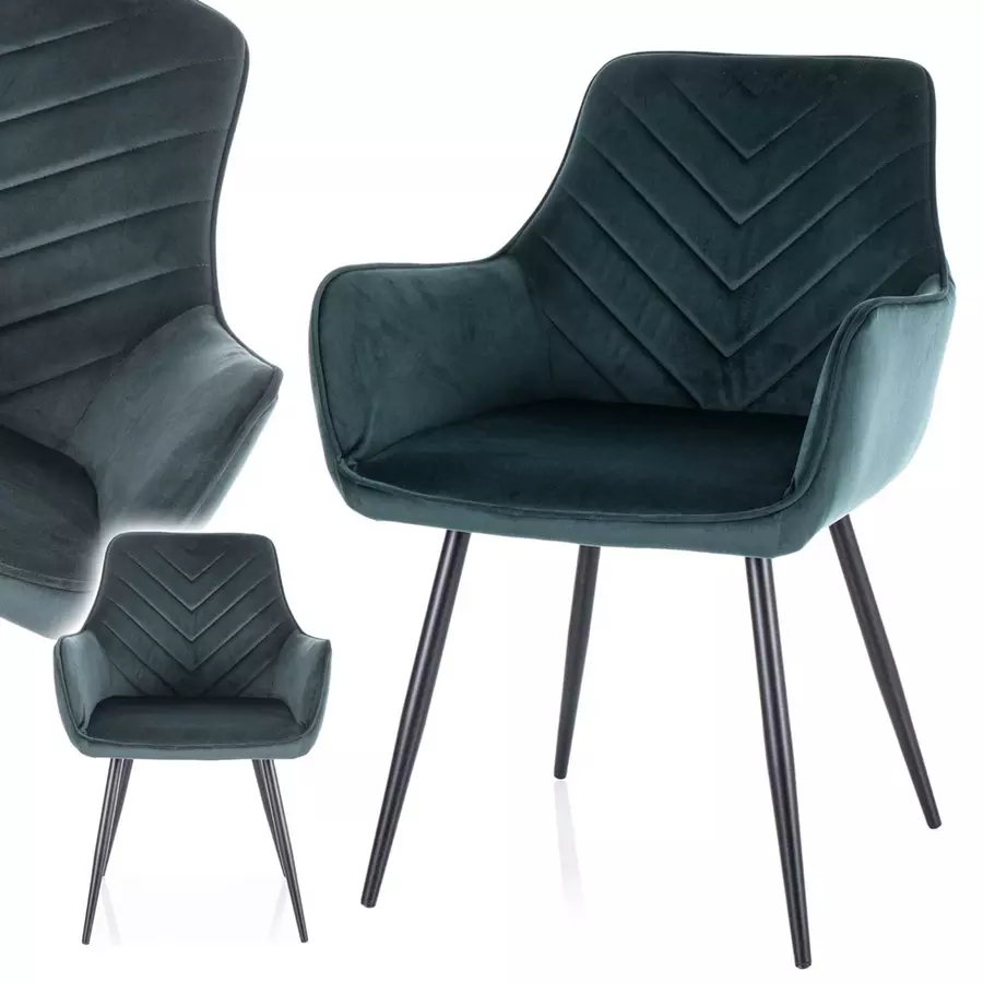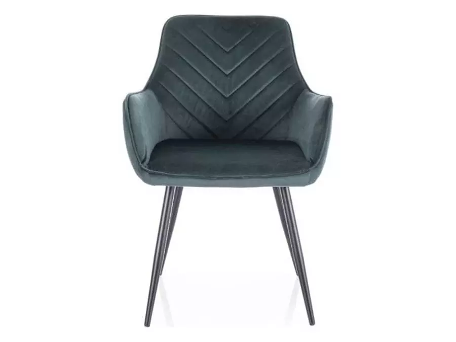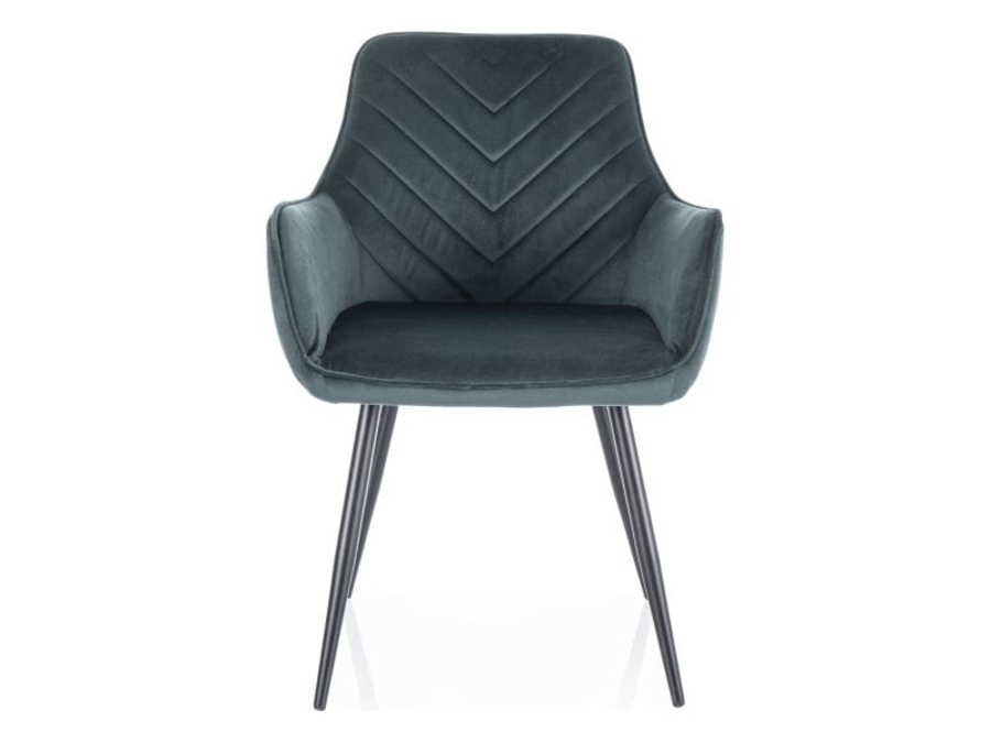 Здравата метална основа в черно матово покритие добавя стабилност и издръжливост, а минималистичният силует подчертава елегантния характер на креслото. Компактните му размери и универсалният дизайн го правят идеален избор за хол, офис, студио или модерна трапезария, като с лекота се вписва във всяко пространство и добавя стил и уют.