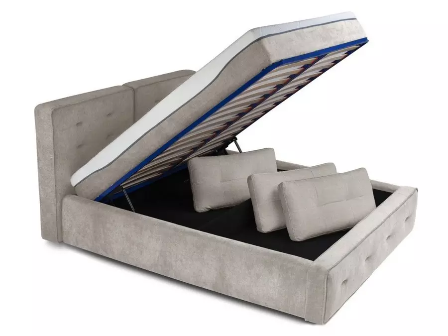 Tапицирана спалня Loreyn се предлага в комплект с вградена метална подматрачна рамка и еластични букови ламели. За удобство е монтиран и амортисьорен механизъм за лесно повдигане. Под нея е обособена голяма ракла за съхранение на вещи. Обемната мека табла е тапицирана с мебелна дамаска, и допринася за комфорта и удобството при ползване. Възможността за избор на различен цвят на тапицерията, значително улеснява съчетанието на спалнята с интериора в дома.