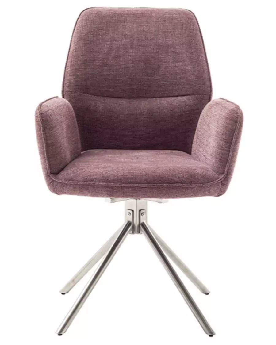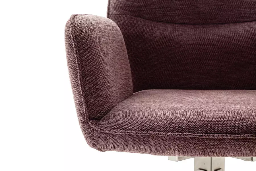 Седалката е пълнена с високоеластична пяна, която предлага отличен комфорт при дълго седене, правейки го идеален за трапезни маси или офис пространства. Облеклото на стола е от мек текстурен плат, който не само че придава изискан външен вид, но също така е много лесен за поддръжка и устойчив на износване.
