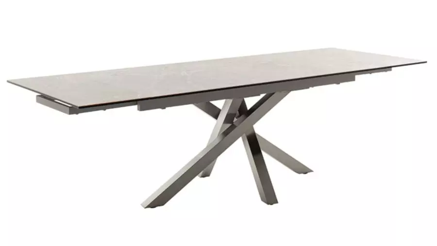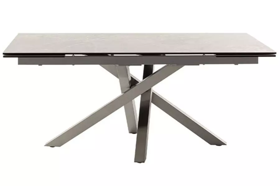 Трапезната маса АЛМИРОС е перфектен избор за тези, които търсят съчетание от модерна визия, функционалност и устойчивост. Тя е изработена с керамичен плот, който има уникален ръждив ефект, придаващ масата индустриален и стилен вид. Плотът е не само естетически привлекателен, но и изключително издръжлив и лесен за поддръжка, което го прави подходящ за дългосрочна употреба.