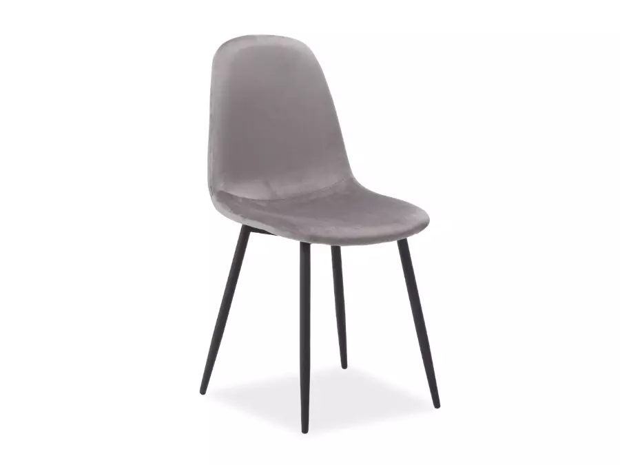 Трапезен стол ФОКС в сиво/черно е чудесен избор за модерни кухни и трапезарии, обзаведени в съвременен или скандинавски стил. Седалката е облечена в приятна на допир сива материя, която осигурява комфорт. Здравата основа на стола се състои от четири прави метални крака, боядисани в цвят дъб, придавайки му естествен и стилен вид.