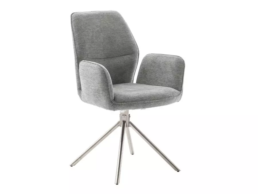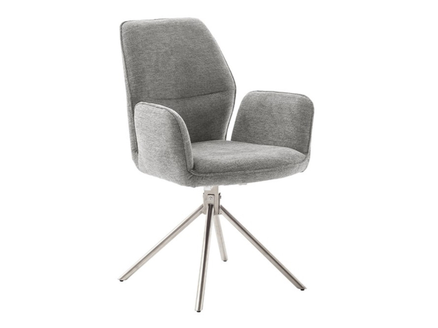 Седалката е пълнена с високоеластична пяна, която предлага отличен комфорт при дълго седене, правейки го идеален за трапезни маси или офис пространства. Облеклото на стола е от мек текстурен плат, който не само че придава изискан външен вид, но също така е много лесен за поддръжка и устойчив на износване.