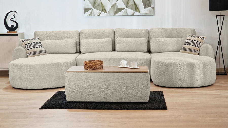 Модулен диван САЛТА, с фнкция сън. Размер на площта за спане:302х140 см. Височина на седалищната част:43 см.