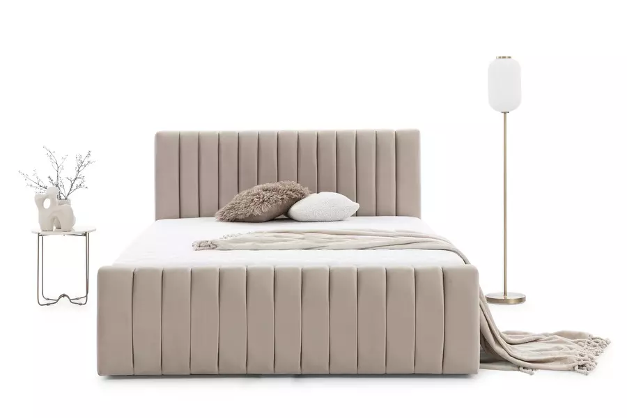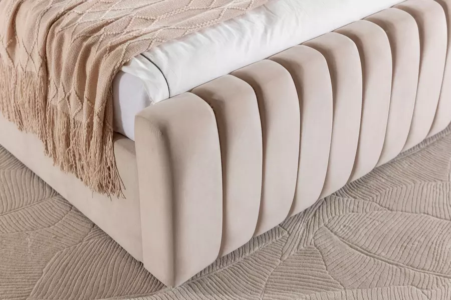 Тапицирано е с висококачествено матово кадифе, което е изключително меко и приятно на допир, придавайки усещане за уют и лукс. Леглото се предлага в широка гама от цветове и текстили, като при избор на различен текстил е възможна промяна в цената.