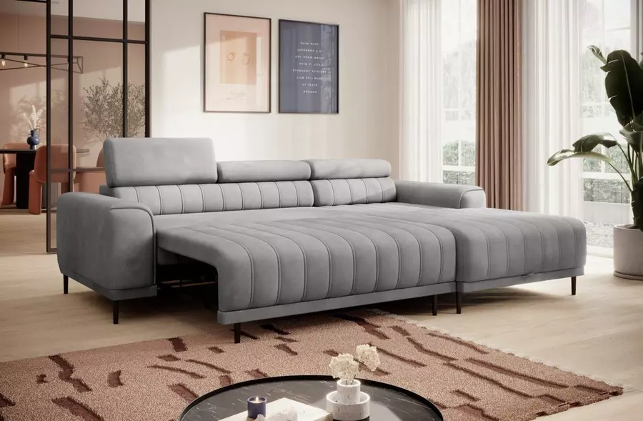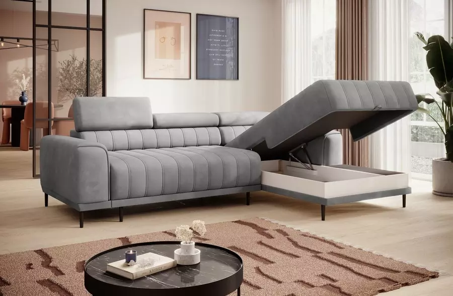 Ъгловият диван КАЛДО S е стилно и функционално решение за всяка модерна дневна. Съчетава изчистен дизайн с множество практични характеристики, които го правят идеален както за почивка, така и за ежедневна употреба. Моделът разполага с удобна лежанка, под която се намира просторна ракла с размери 165х65х16 см – перфектна за съхранение на спално бельо или сезонни вещи. Благодарение на вградения ПУМА механизъм, диванът лесно се превръща в легло с площ 215х136 см, осигуряваща комфортно място за сън.