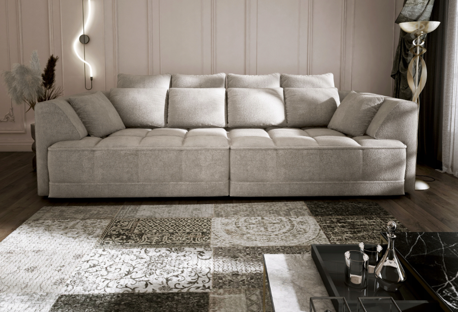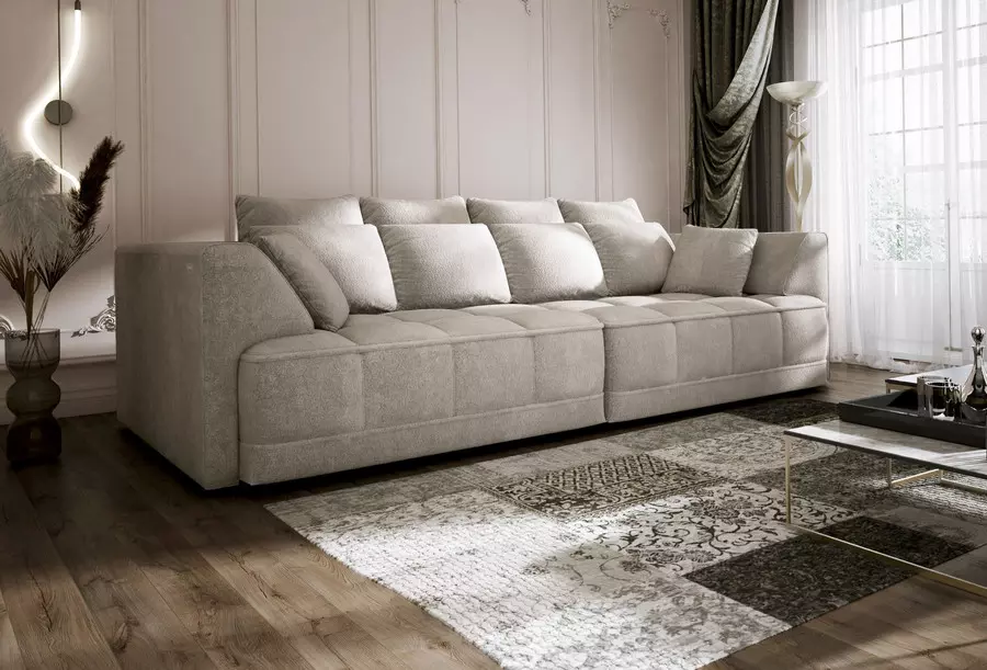 Диванът разполага с множество декоративни възглавници,които са със сваляеми калъфки с цип.