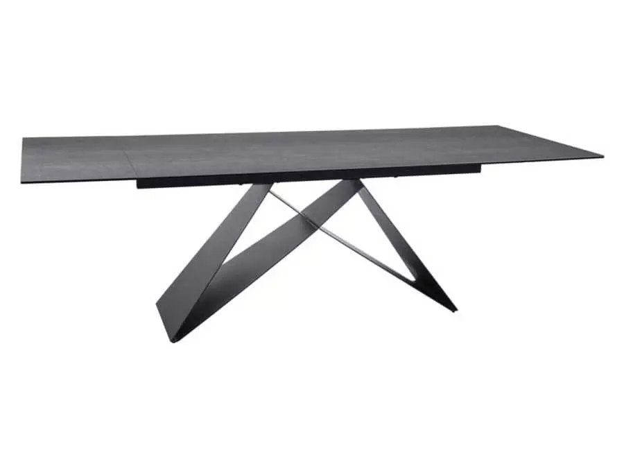 Стабилната рамка на масата гарантира дълготрайност и устойчивост, като осигурява здравина и стабилност на конструкцията. Основата е проектирана с кръстосани извити крака, които добавят модерен акцент към класическия дизайн на плота. Тази комбинация от изчистени линии и иновативна основа прави масата уникално елегантна и същевременно функционална. Масата предлага възможност за разтягане на плота, което я прави изключително практична и подходяща както за ежедневна употреба, така и за по-големи събития и семейни събирания. След разтягане, масата достига дължина от 240 см. Тази характеристика осигурява гъвкавост и удобство, като позволява адаптиране на масата според нуждите и пространството.