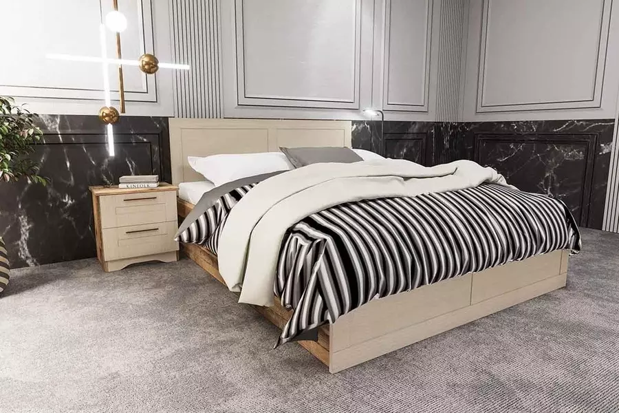 "Фиаско" се отличава със съвременен и изискан външен вид, подходящ за различни интериорни стилове. Комбинацията от качествени материали и стабилна конструкция гарантира дълготрайна употреба и устойчивост, като същевременно създава хармонична и уютна атмосфера в спалнята.
