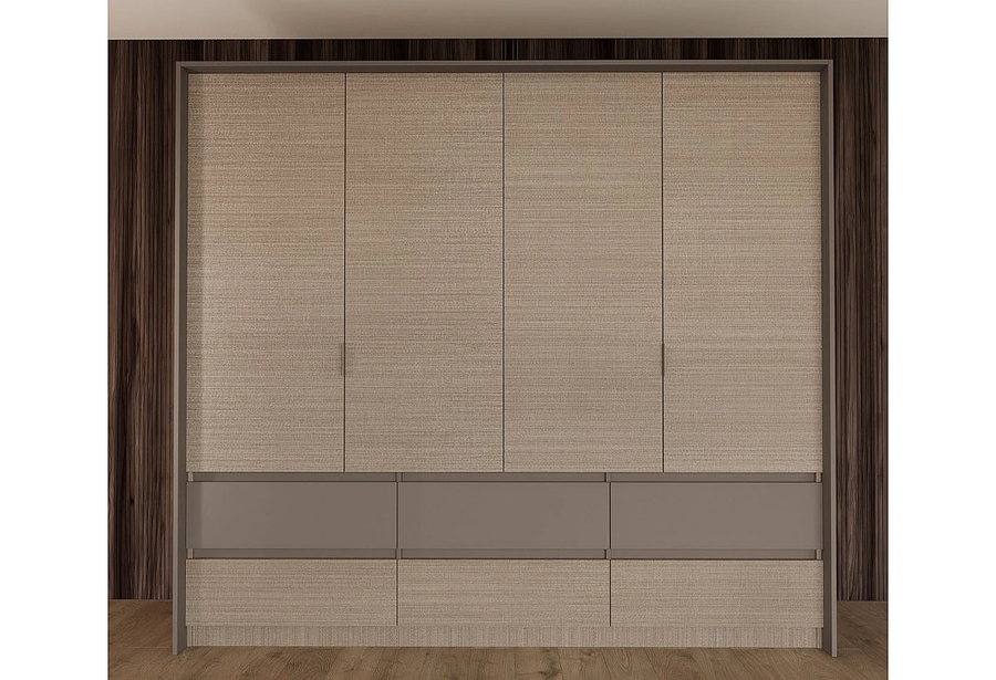 Гардероб „Наутилус“ с четири врати е съвременно и функционално решение за съхранение, което добавя стил и удобство във вашата спалня. Част от колекция „Наутилус“, този гардероб е проектиран така, че да се комбинира с легло с включени нощни шкафове и скрин от същата серия, за да създаде хармоничен и завършен интериор.