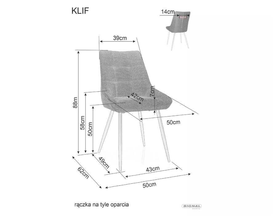 Трапезен стол КЛИФ е стилно допълнение с елегантен минимализъм, идеален за съвременни интериори. Седалката, изработена от пяна и висококачествена материя, предлага комфорт и издръжливост. Тапицерията с текстурирана структура добавя изискан вид. Подходящ за трапезарии, холове и обществени пространства като чакални и хотели, този стол има максимално натоварване от 120 кг, осигурявайки стабилност и дълготрайност.
