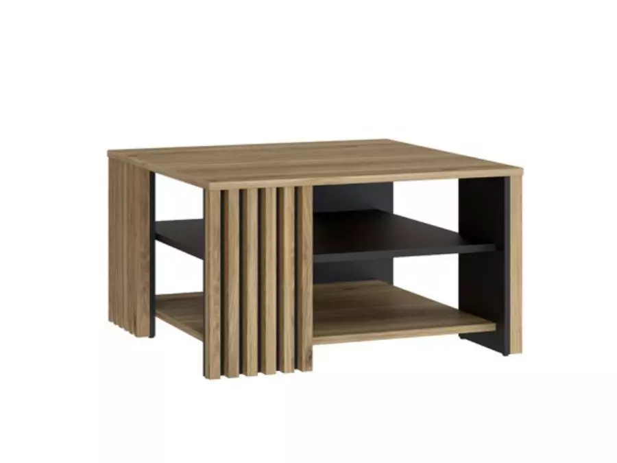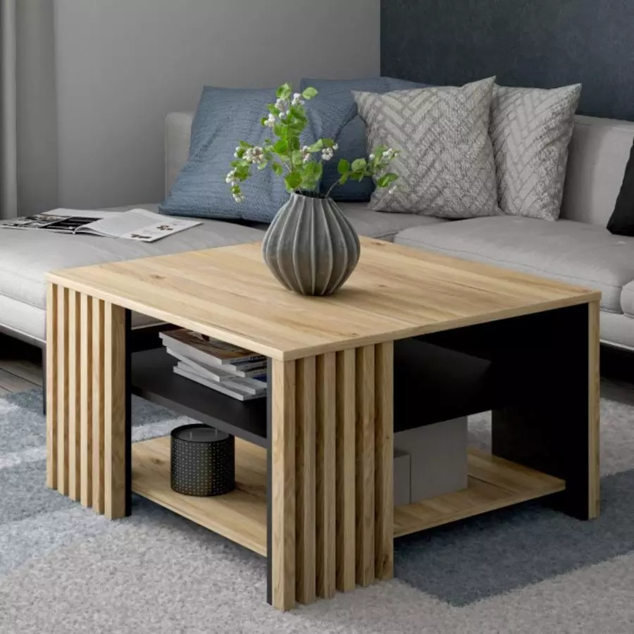 Холна маса ЙОАКИМИС съчетава стил и функционалност, като придава елегантен завършек на вашата всекидневна. Изработена от висококачествено ламинирано ПДЧ, тя осигурява издръжливост и устойчивост. С модерна комбинация от дървесен финиш и черни акценти, масата е подходяща за различни интериорни стилове. Предлага просторен плот и допълнителен отворен рафт за удобно съхранение, запазвайки минималистичния дизайн. Отлично решение за добавяне на практичност и стил във вашия дом.