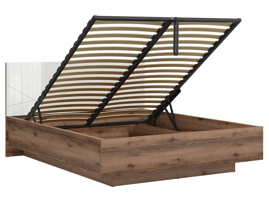 Леглото е оборудвано с подматрачна рамка и механизъм за повдигане, което позволява лесен достъп до подматрачното пространство, което е идеално решение за съхранение на вещи.