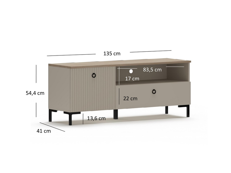 ТВ Шкаф ДОМИНИКА комбинира елегантен дизайн и функционалност. Този модел с една вратичка и едно чекмедже предоставя достатъчно място за съхранение.