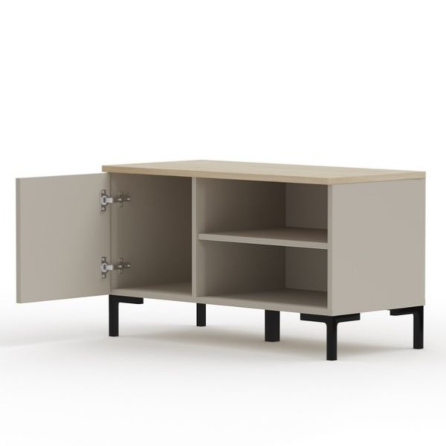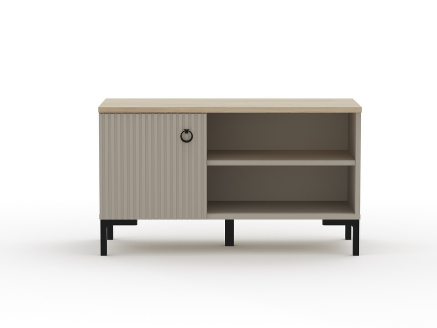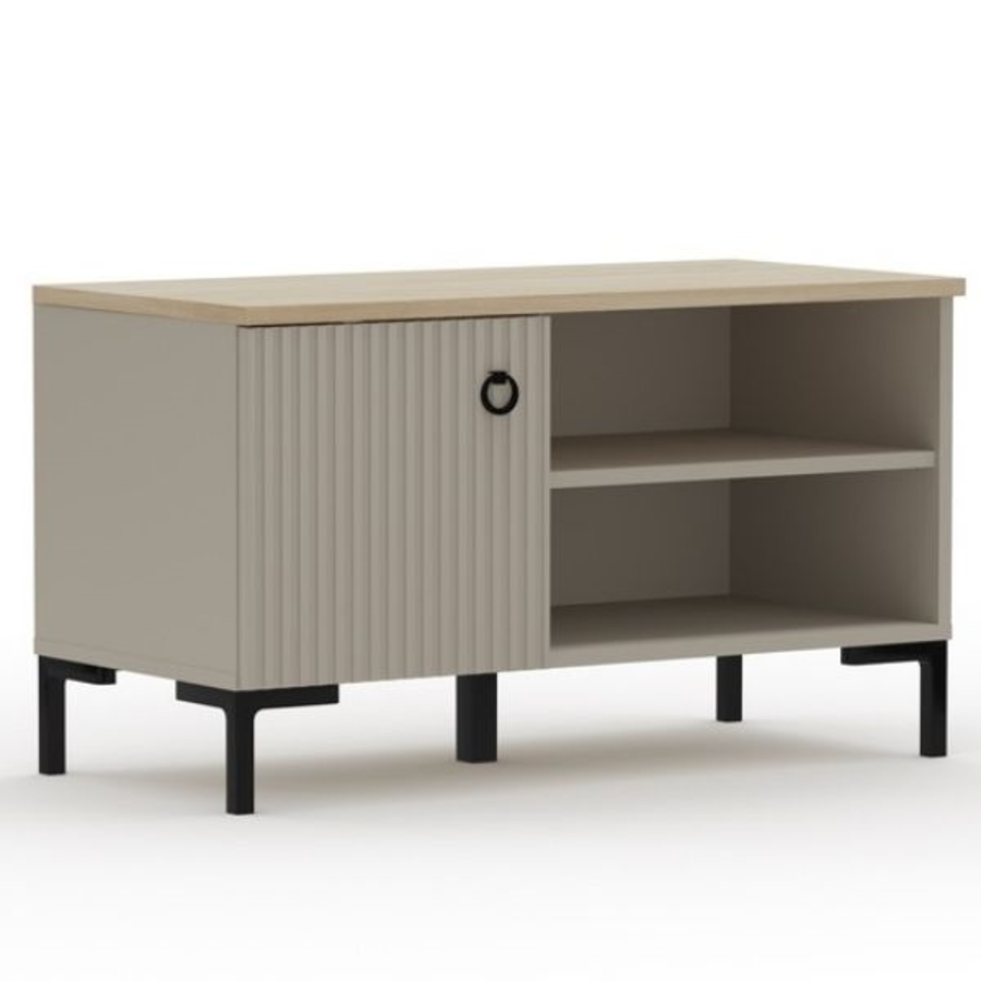 Шкафът за обувки ДОМИНИКА съчетава елегантност и функционалност, като придава модерно излъчване на всяко антре. Моделът е в изискания цвят таупе с акцент от дъб Silverjack, който допълва всяко интериорно решение.