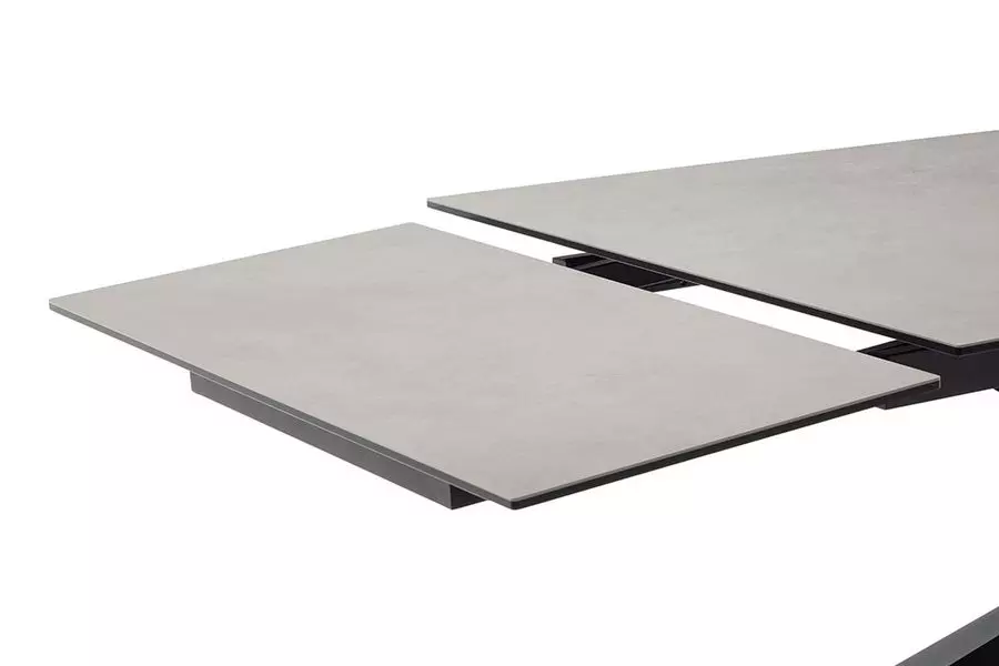 Трапезната маса ТЕСЕРО е елегантно съчетание от съвременни материали и иновативен дизайн, която ще придаде стил и функционалност на всяко пространство. Плотът на масата е изработен от керамика в цвят антрацит, който не само че привлича вниманието с уникалната си текстура, но също така е изключително устойчив и лесен за поддръжка.