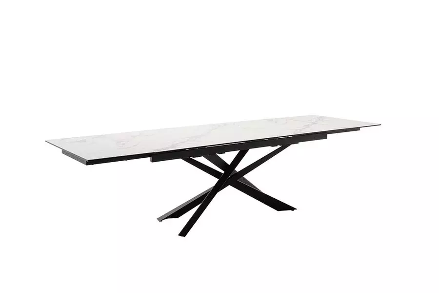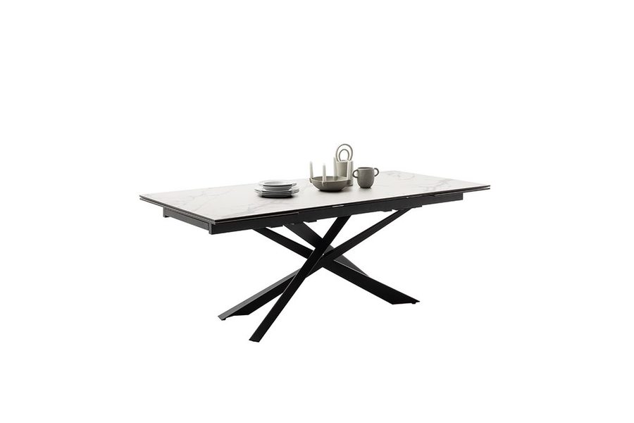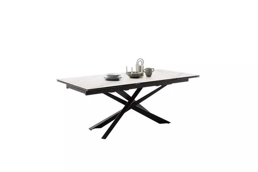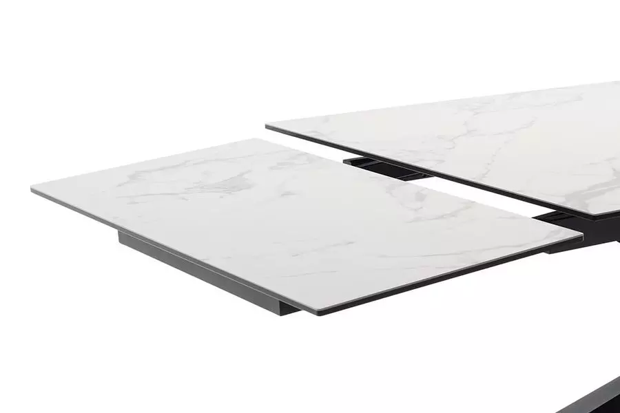 Трапезната маса ТЕСЕРО е елегантно съчетание от съвременни материали и иновативен дизайн, която ще придаде стил и функционалност на всяко пространство. Плотът на масата е изработен от керамика с мраморен ефект в кремов цвят, който не само че привлича вниманието с уникалната си текстура, но също така е изключително устойчив и лесен за поддръжка.
