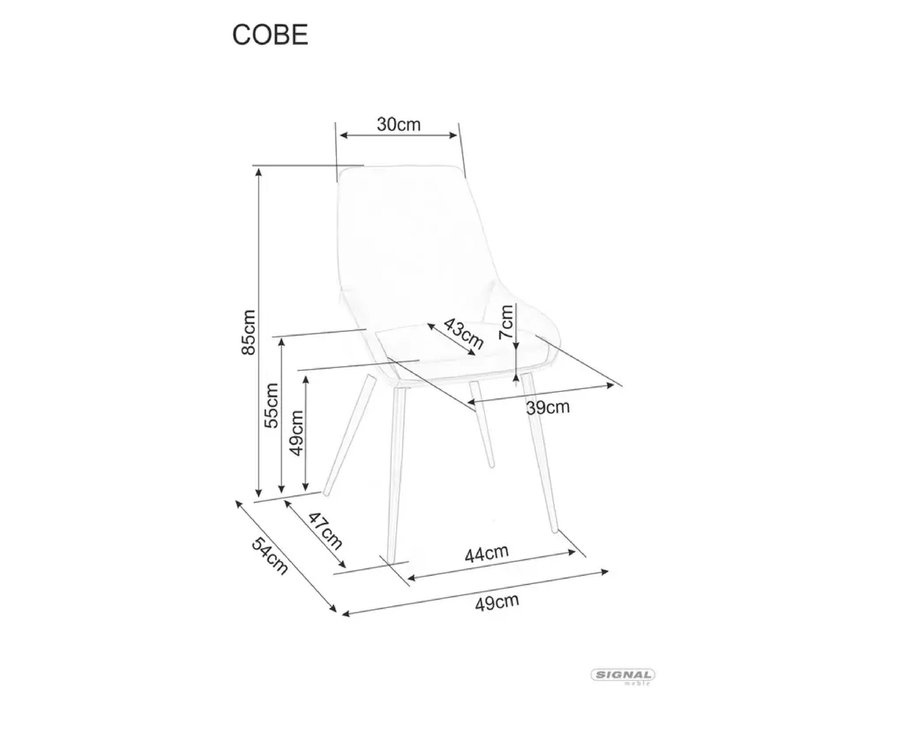 Трапезен стол КОБЕ е съвършеното съчетание от модерен стил и изключителна стабилност. Черните метални крака с матово покритие придават индустриална елегантност, докато ергономичната седалка, изработена от пяна и кадифен плат, осигурява мекота и комфорт при продължително седене. Със своето максимално натоварване от 120 кг, столът е здрав и издръжлив, което го прави подходящ за различни пространства – от уютния дом до ресторанти и кафенета. КОБЕ е перфектният избор за стилни и функционални интериорни решения.